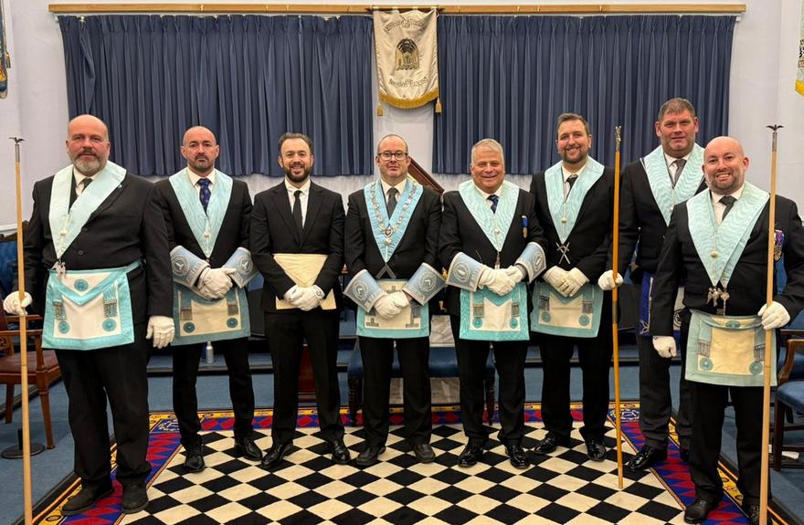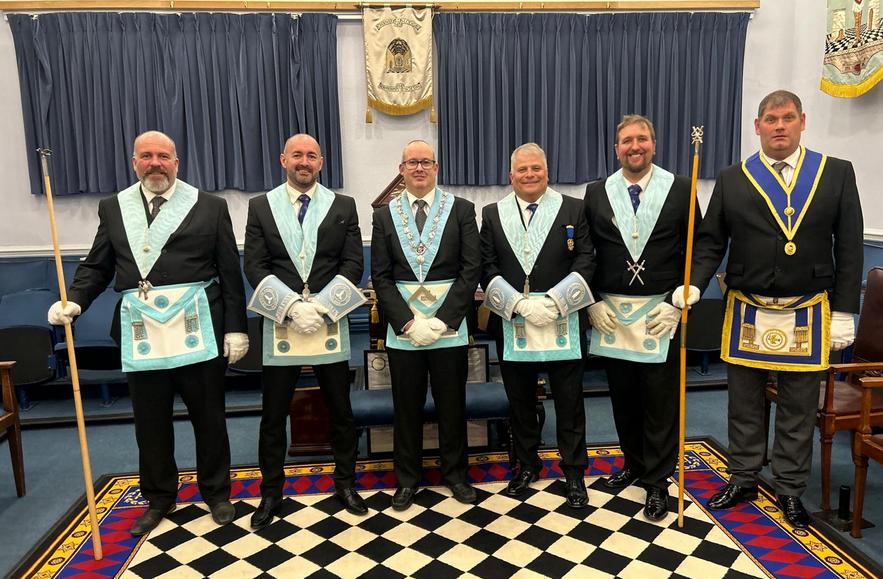 Initiate Bro. Liam Foster, with Worshipful Master Jim Birtchnell and other brethren November 2016